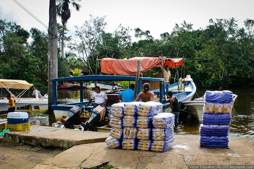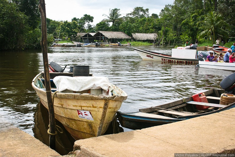 Еще немного, и мы добрались до деревушки Сан Хосе де Буха. Это центр небольшой вселенной — речной порт, где можно взять топливо для лодки, купить макароны и пластмассовые тазики. В общем, с точки зрения городского человека — дыра дырой.