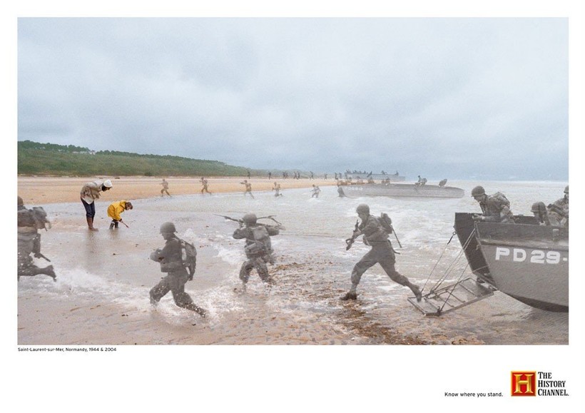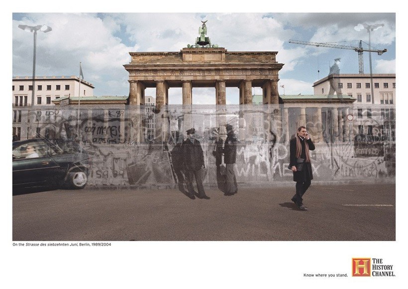 Фотограф Сет Тарас в рамках рекламной компании телевизионного канала The History Channel реализовал потрясающую идею. Поскольку у каждого места имеется своя история, он решил на одном снимке объединить прошлое и настоящее — старые документальные фото и современные кадры. Таким образом, он отправил своих зрителей в невероятное путешествие во времени. Свой уникальный проект Тарас назвал «Знай, где ты стоишь». Реклама получилась настолько впечатляющей, что ее можно пересматривать вновь и вновь!