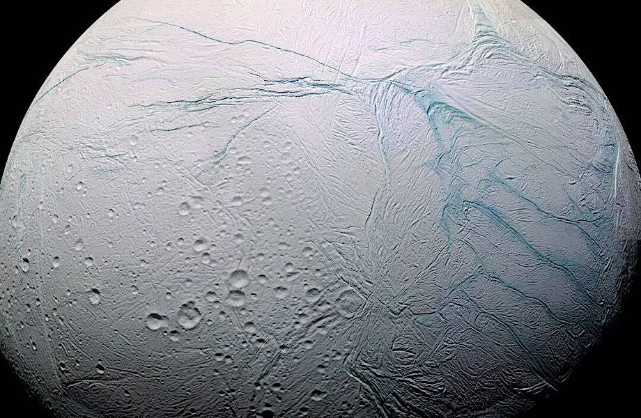 Поверхность Энцелада представляет собой огромное ледяное поле, изредка прерываемое кратерами и трещинами. Из-за того, что спутник практически полностью покрыт льдом и снегом, его поверхность обладает высокой отражательной способностью — Энцелад возвращает в космическое пространство до 90% всех поступающих на его поверхность солнечных лучей. По этой причине температура на его поверхности не поднимается выше -200ºС. Но даже учитывая это обстоятельство, ученые верят в потенциальную жизнь на спутнике, и вот почему.