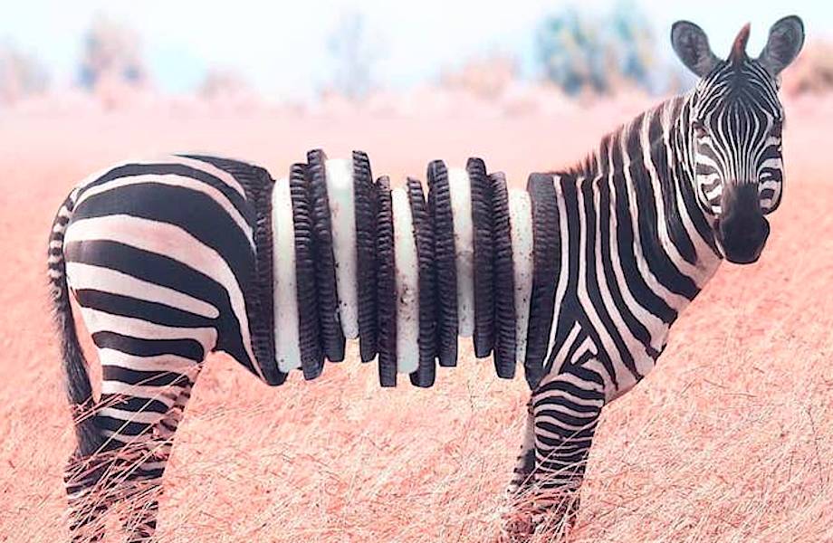 Фотохудожник Рональд Онг создает сюрреалистические изображения, в которых ловко объединяет животных с едой и другими неожиданными предметами. В его работах туловище зебры состоит из стопки знаменитого печенья Oreo, а тело лисы больше всего напоминает Онгу буханку хлеба. Эти причудливые гибриды выглядят так, будто только сошли со страниц какой-то фантастической книги.