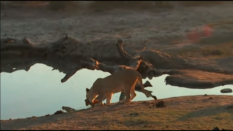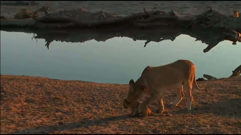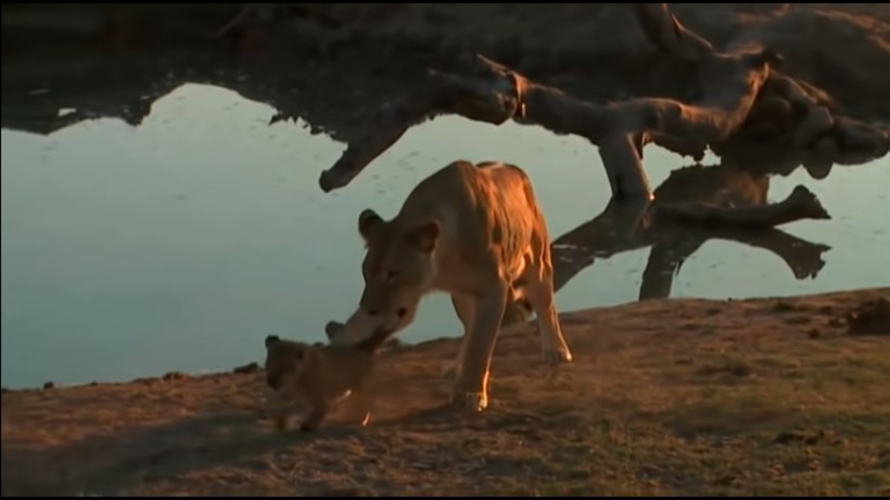 Львенок оказался любопытным ребенком и с охотой лезет в воду, возможно, ему просто жарко и он хочет охладиться, или ему очень интересно, что такое вода и что там есть любопытного. Но это может быть очень опасно, ведь малыш беспомощен и просто не успеет никак среагировать, если появится опасность. Именно поэтому мама-львица пытается отвести его подальше от водоема. А он не желает слушаться и еще рычит, снова и снова пытаясь вернуться к воде. Мама даже не может схватить его зубами и оттащить, шустрый детеныш убегает от нее, что-то при этом недовольно бурча себе под нос.