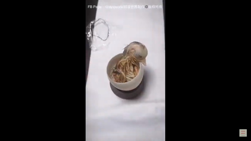 Вылупление цыпленка из яйца происходит на 20-21 день. В видео ему не приходится пробивать скорлупу самостоятельно с помощью клюва, так как верхушки яйца уже нет. Человек помогает ему выйти с помощью пинцета. И вот цыпленок уже на свободе, открывает полностью глазки и радуется жизни.