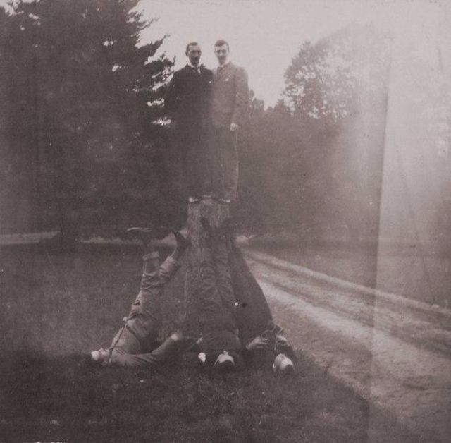 Гимнастические пируэты у пня. Сверху можно разглядеть Николая II собственной персоной