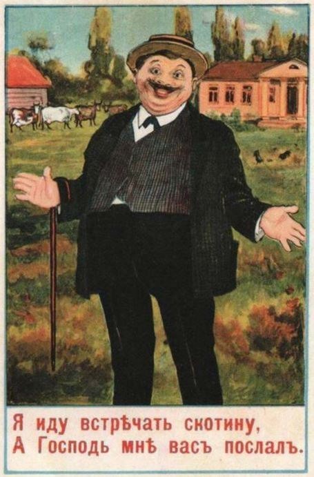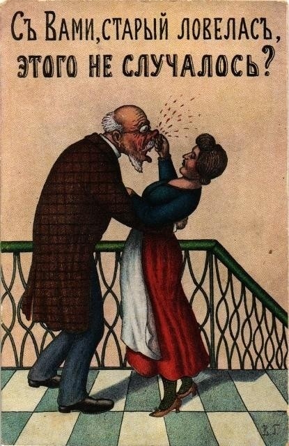 Русские юмористические рисунки ведут свою историю от «лубочных картинок». Есть такая версия, что название «лубок» произошло от Лубянки — московской улицы, где жили рисовальщики этих картинок. Открытки делились на несколько типов: «глянцевые», «эмаль с золотом», «плюшевые», «аристократические» и прочие.