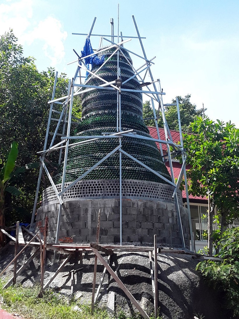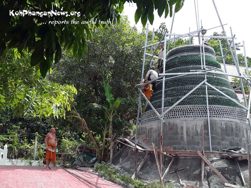 На тайском острове Панган при храме Тонг Най Пан тоже вскоре появится ступа, только материал для нее выбран весьма своеобразный — это пивные бутылки. Над сооружением уже какое-то время трудится буддийский монах.