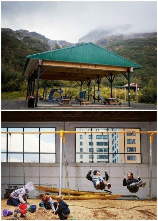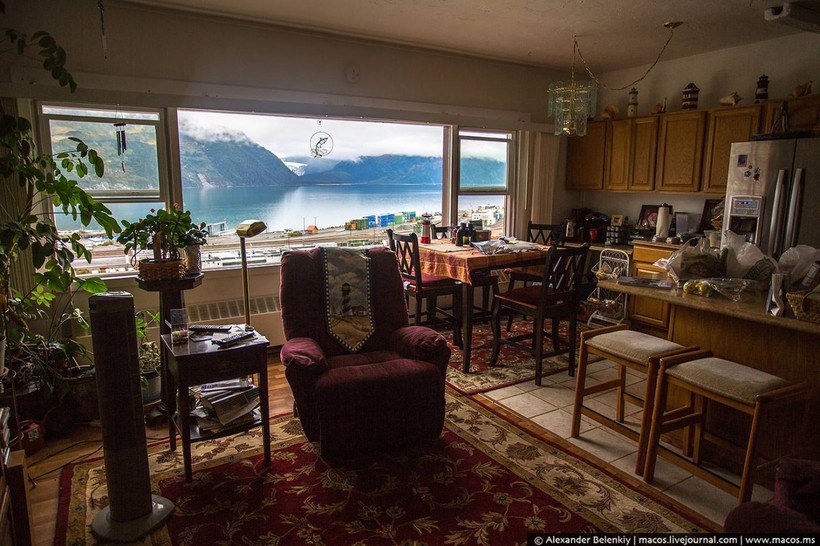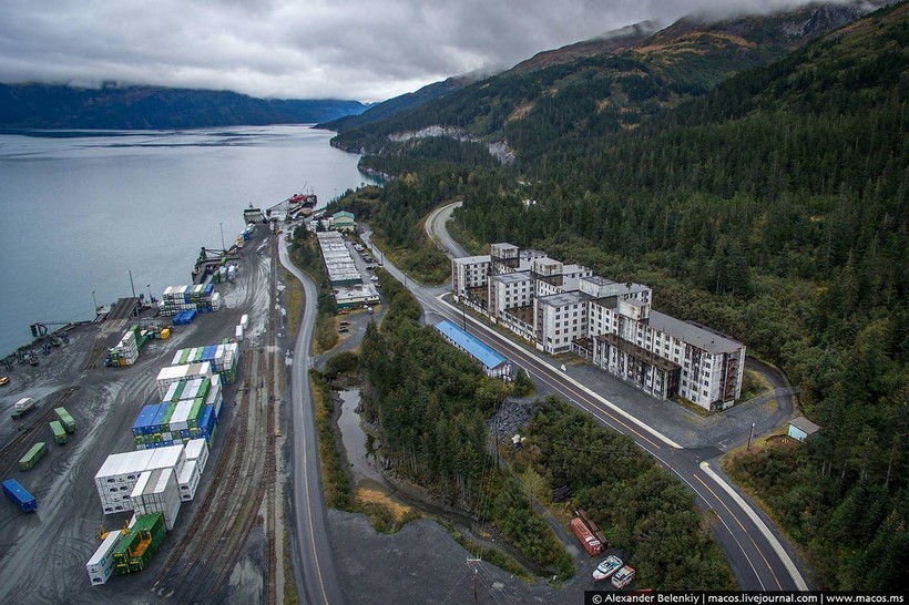 Фантазии современных архитекторов в постройке зданий ничем не ограничены. К примеру, Кривой дом в городе Сопот в Польше выстроен без прямых углов, а дом-камень в горах Португалии был обустроен человеком прямо среди огромных валунов, созданных волшебницей-природой. Еще одно любопытное здание можно встретить на северо-востоке полуострова Аляска. Здесь, среди величественных гор, диких лесов и ледников находится город Уиттиер, состоящий всего из одного единственного дома. В послевоенное время это здание принадлежало военно-морской базе, которая расположилась в незамерзающей глубоководной бухте. Рядом с 14-этажной высоткой раньше были частные домики местных жителей, но в 1964 году все они сильно пострадали от цунами. Волны, достигавшие 13 метров, превратили городок в настоящие руины. Многоэтажку же удалось быстро восстановить, однако случившееся заставило военных подыскать себе другое место для базирования. В результате в опустевшее здание заселились местные горожане.