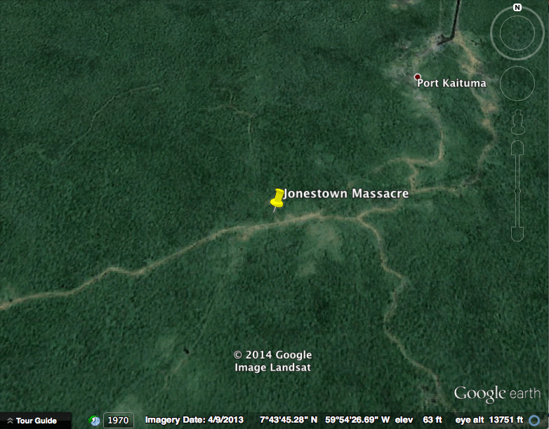 Координаты самоубийства в Джонстауне: 7°43'59''с.ш., 59°52'59'' з.д.