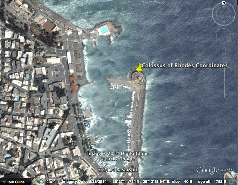 Колосс Родосский: 36°27'04'' с.ш., 28°13'40'' в.д.
