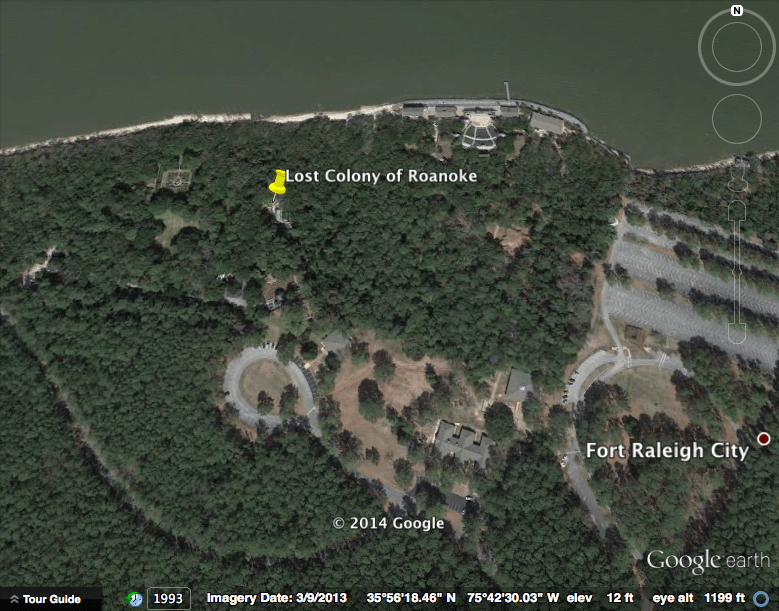 Колония Роанок: 35°55'42'' с.ш., 75°42'15'' з.д.