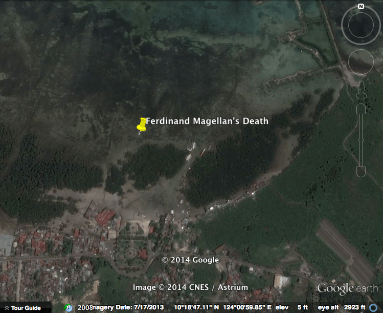 Смерть Магеллана: 10°17'00''с.ш., 123°59'00'' в.д.