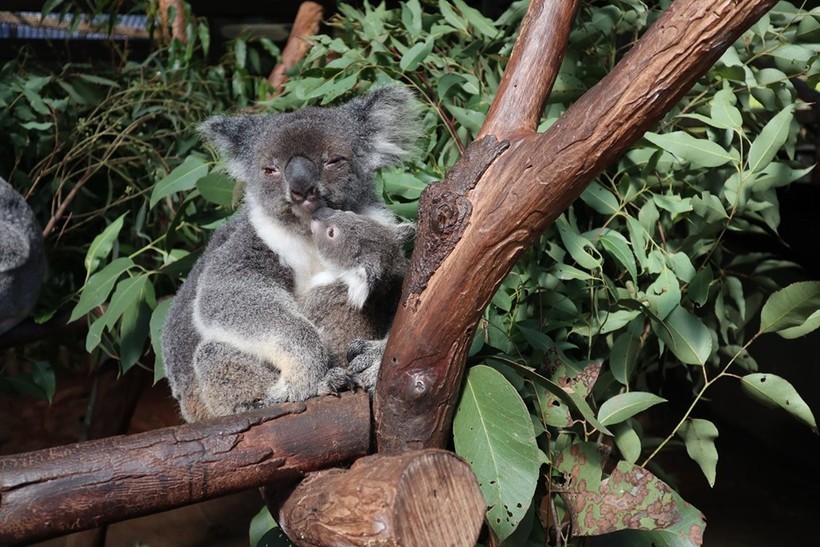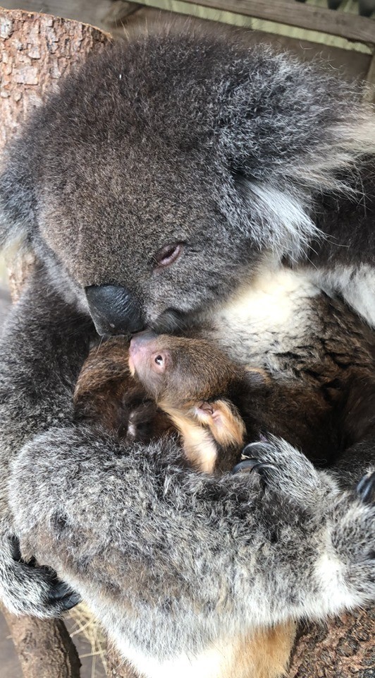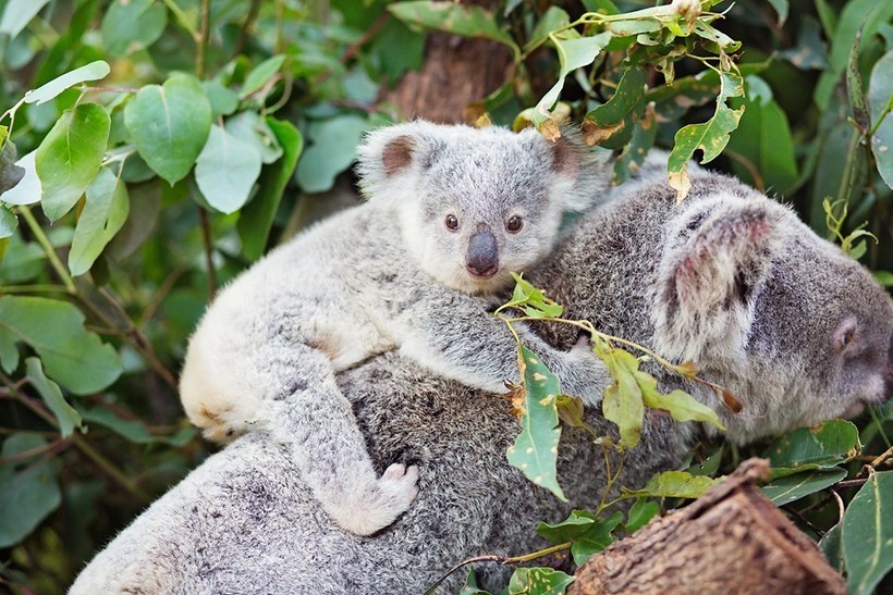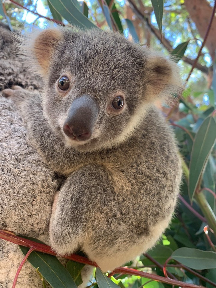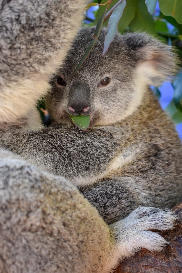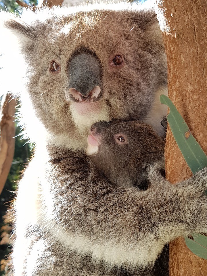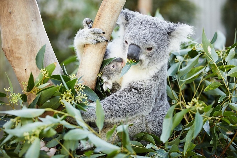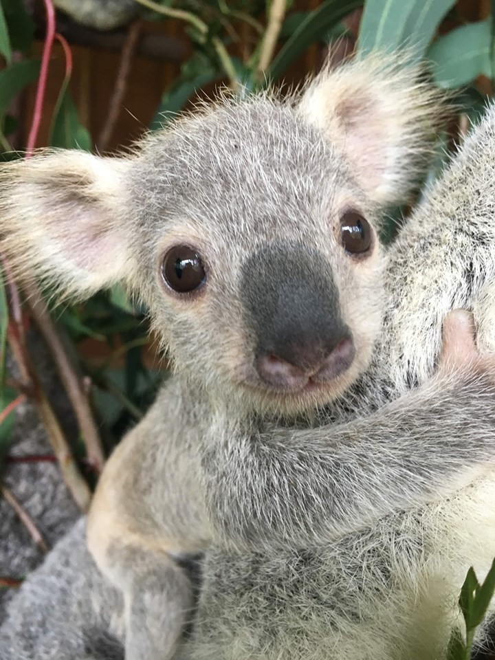 Напомним, коалы — это сумчатые животные. Обычно малыши рождаются очень крохотными, меньше двух сантиметров в длину и весом около 5-6 граммов. До полугода они живут в сумке матери и питаются ее молоком. Вот и Таллоу совсем недавно стала выбираться на самостоятельные прогулки. Однако эта кроха еще совсем не скоро отделится от своей мамы: еще несколько месяцев она будет «путешествовать» на ее спине или животе, держась за пушистый мех.