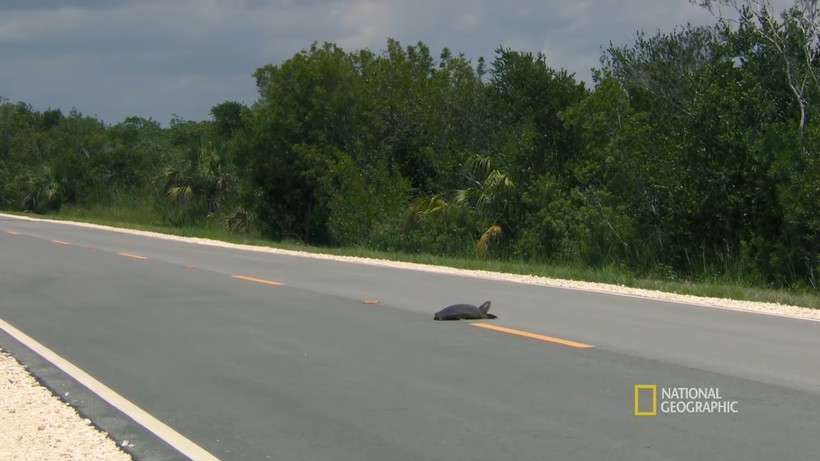 Эта черепаха привлекла внимание хищника, перейдя достаточно оживленную трассу. Особи, которые живут в пресных водоемах, некоторое время могут проводить на суше, особенно тогда, когда приходит время для кладки яиц. За один сезон самки могут отложить до тысячи яиц, но часто судьба их печальна — их съедают животные или находят люди.