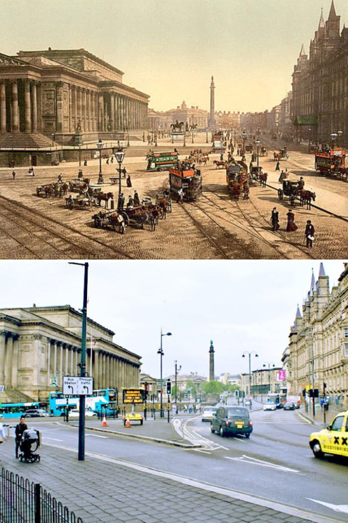 Мир стремительно развивается, и единственное визуальное напоминание о прошлом запечатлено в архиве изображений. Недавно нам посчастливилось найти весьма интересное сопоставление исторических фотографий семи английских городов, на которых видно, какими были эти места в конце 19 века и какими они предстают перед нами сейчас. Сравнивая снимки, сделанные в одной и той же локации, можно увидеть, как эти города изменились за последние 125 лет. За этот относительно небольшой временной отрезок все — от архитектуры до стиля жизни и модных тенденций — претерпело кардинальную трансформацию. К счастью, некоторые изящные исторические здания выдержали испытание временем и до сих пор служат свидетельством величественных эпох. И все же современность изменила английские города до неузнаваемости.
