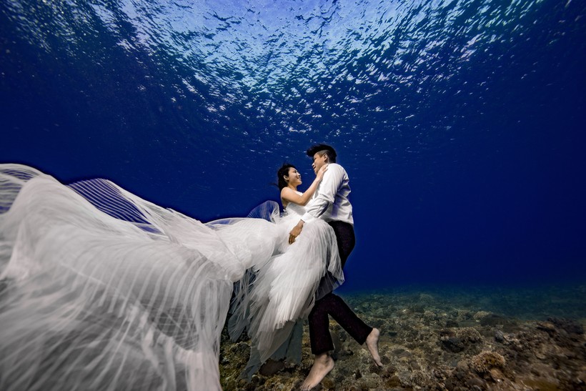 Выбор фотографа для свадьбы не менее важен, чем подбор нарядов жениха и невесты. Ведь от него зависит, насколько волшебным останется в памяти торжество. Молодоженам Натурэль и Дереку из Тайваня определенно удалось устроить самую необычную фотосессию: они погрузились под воду. Ну а их идеи очень успешно воплотил фотограф из Гонконга Дэниэл Тэм и, кажется, вывел свадебную фотографию на новый уровень.