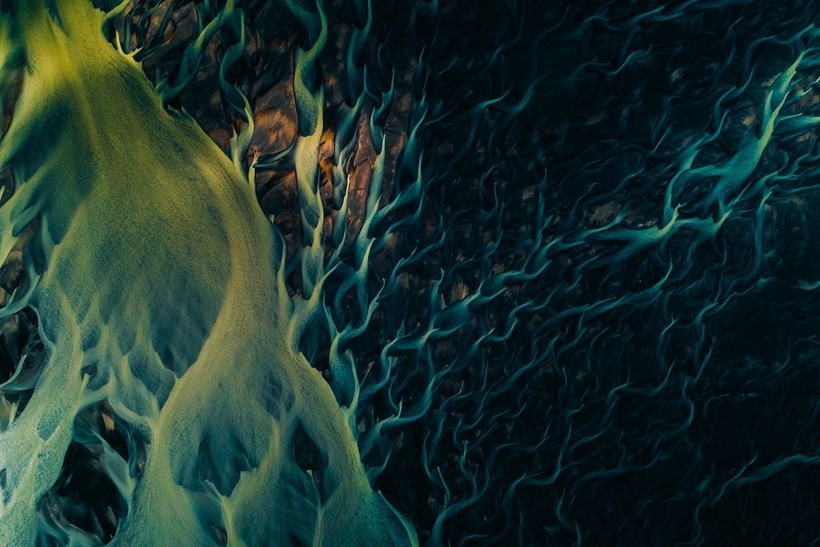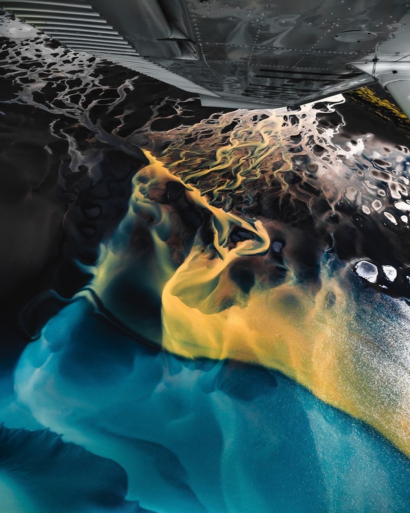 Его невероятные работы весьма абстрактны: природа создает удивительные узоры с помощью рек, таящих льдов и волшебных оттенков. Рен говорит, что пока он парит над этими ледниковыми потоками, ему зачастую трудно понять, что именно он фотографирует. Но в итоге результаты впечатляют.