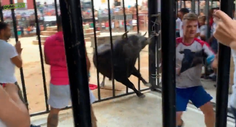 Ради невероятных ощущений люди готовы пойти на многое, особенно если это балансировка на грани жизни и смерти. Но такой вид экстрима привлекает только тех, чье чувство самосохранения находится на крайне низком уровне. Это видео — наглядный пример экстрима, который мог бы закончиться очень плохо. Мужчина в последний момент успел проскочить в решетку, увернувшись от разъяренного быка.