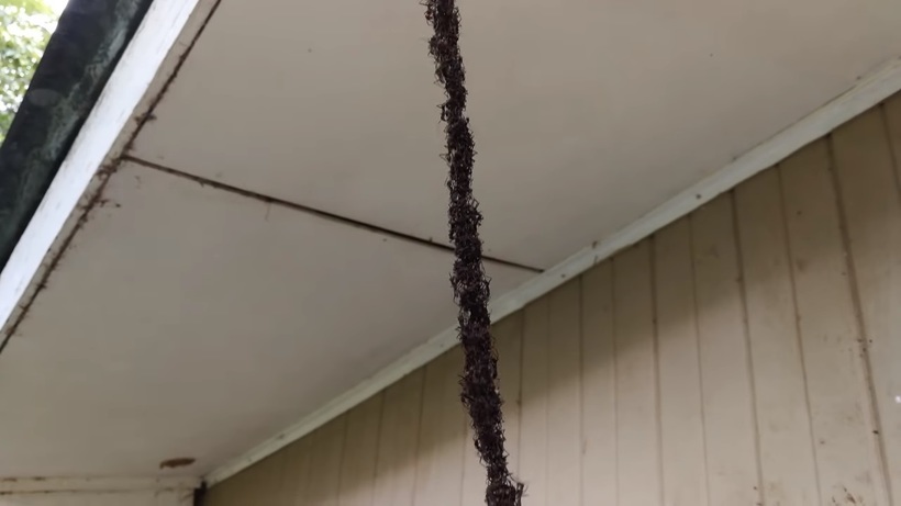В этом видео муравьи создали настоящий «живой мост» для своих целей, и это кажется невероятным. На самом деле практически все муравьи умеют это делать и часто пользуются этим трюком, если нужно преодолеть водную или какую-то растительную преграду. В этом видео муравьи сделали мост для того, чтобы добраться до осиного гнезда. Мост получился довольно большим и живописным — в виде навесной муравьиной гирлянды.
