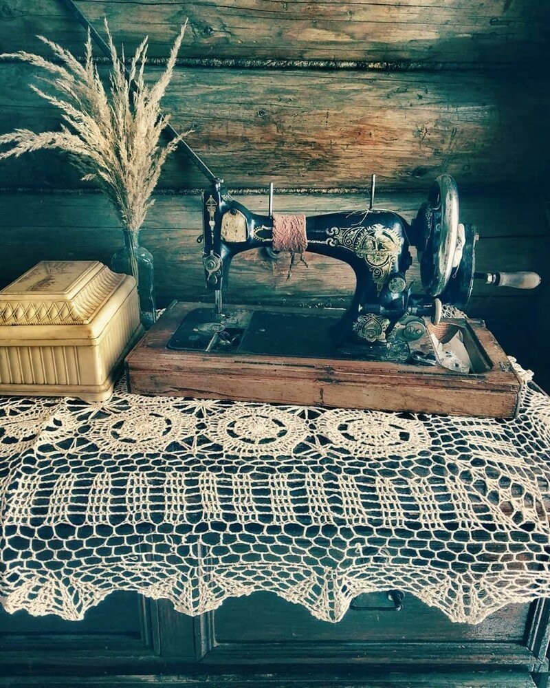 Аккуратно заправленная кровать, перина и взбитая подушка, украшенная ажурной тканью