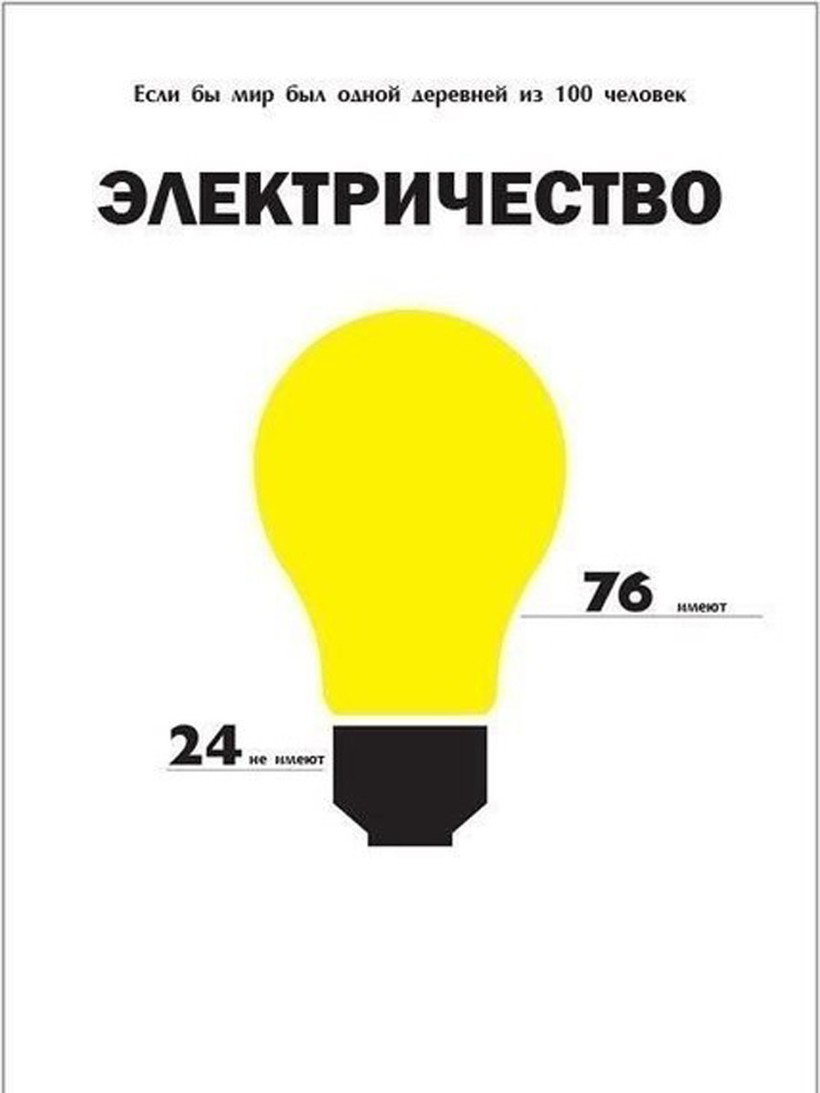 Электричеством мы пользуемся постоянно и даже не имеем представления, что из ста людей, представленного нами поселения, 24 вообще бы его не имели.