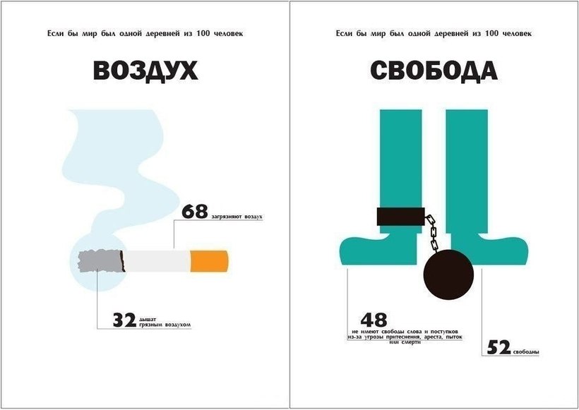 68 людей из 100 постоянно загрязняли бы воздух. Свободой выбора действий в своей жизни могли бы похвастаться только 52 человека, остальные же из-за различных обстоятельств оставались бы ограничены в ней.