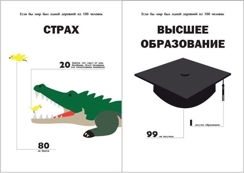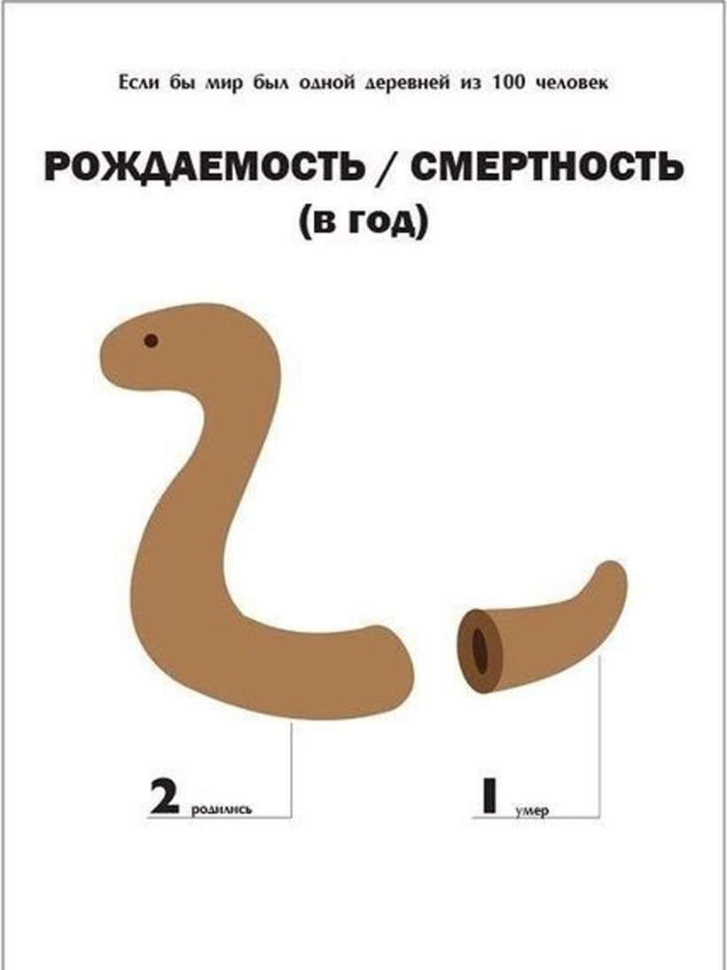 Для этого вообразим, что весь наш мир умещается в одном маленьком населенном пункте и население его не 7 миллиардов, а всего сто человек. Сразу все становится куда понятнее.