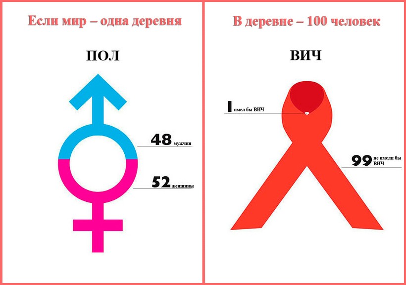 Гендерное соотношение было бы почти равным: 48 людей мужского пола и 52 женского. И лишь один был бы заражен ВИЧ инфекцией.