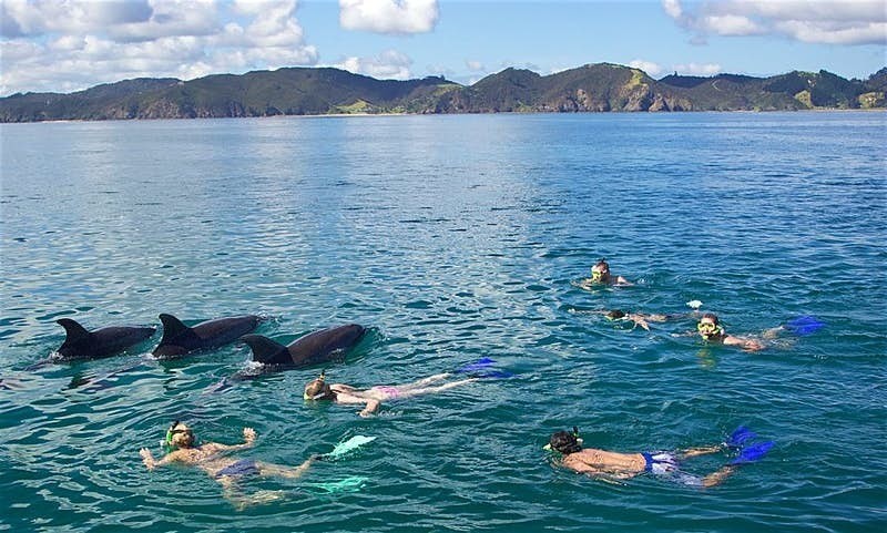 Одно из любимых развлечений туристов в Новой Зеландии — общение с дельфинами. Афалины здесь живут в Заливе Островов, где разбросано более 140 островков, а море вокруг славится биологическим разнообразием. И дельфины как раз одни из самых привлекательных для путешественников обитателей, ведь с ними здесь можно поплавать в открытом море. Афалины очень дружелюбны и любят людей: обычно сами подплывают к лодкам.
