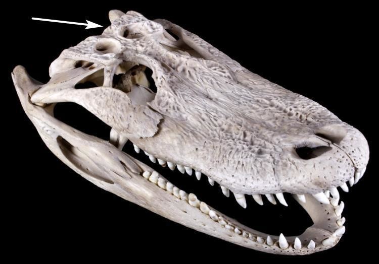 В черепе аллигаторов, а также других рептилий, имеются отверстия, о предназначении которых долгое время спорили ученые. Особый интерес представляло их сходство с отверстиями в черепах вымерших динозавров. Например, в черепе тираннозавра также имелись подобные отверстия, и ученые долгое время полагали, что они играли какую-то роль в функционировании мощных челюстей. Но оказалось, что искали они в ложном направлении, а отверстия в черепе нужны совсем для других целей.