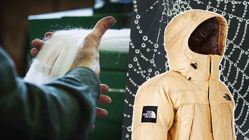 Следующий шаг — специалисты отделяют молекулы белков, прядется нить, а уже из множества нитей получается легкая и прочная ткань для будущих курток. Она отличается не только легкостью и красотой. Этот материал водонепроницаемый и дышащий, в одежде из него путешественники и экстремалы будут чувствовать себя очень комфортно. Вместе с таким отличным по качеству материалом в куртке будет специальный теплый наполнитель, который сделает ее пригодной для носки при низких температурах и в горах.