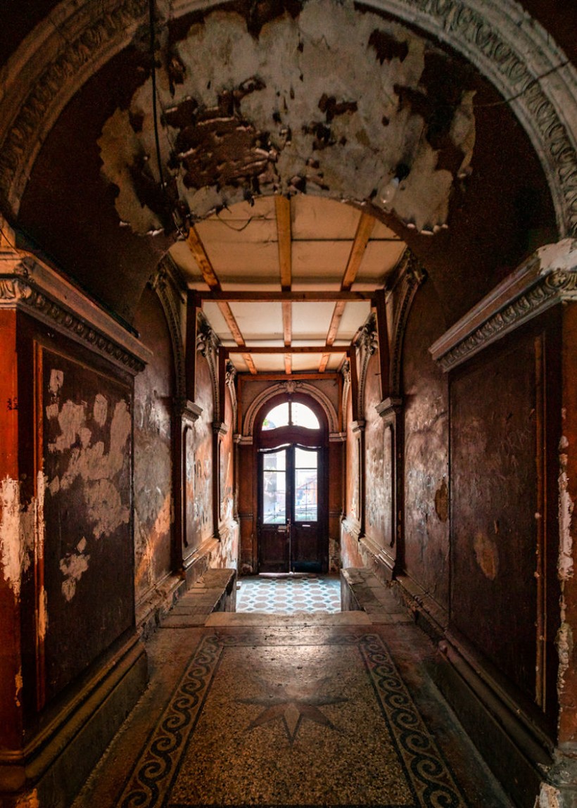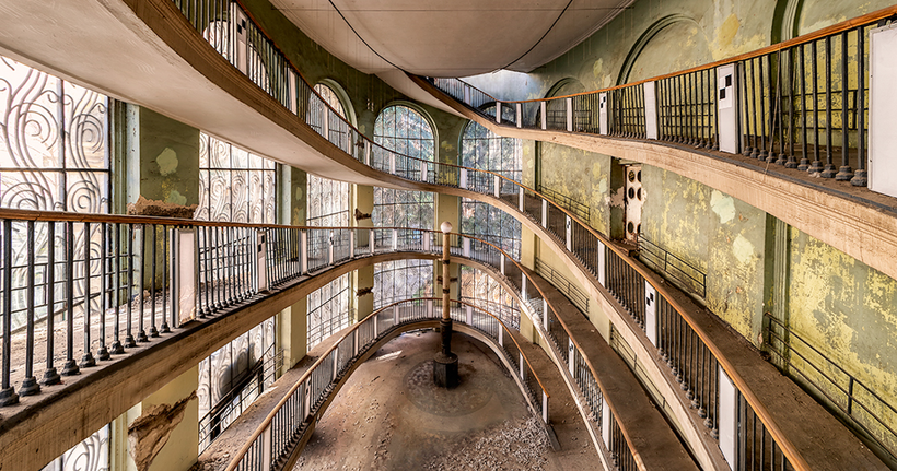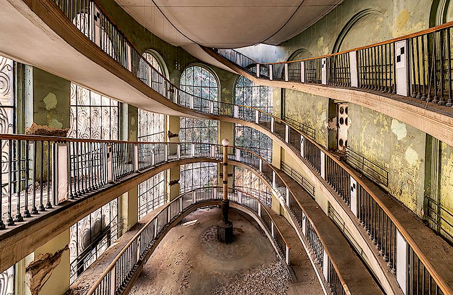 Стены переходов между этажами до сих пор украшены живописью. На то, чтобы рассмотреть все детали, у фотографа ушло немало времени.