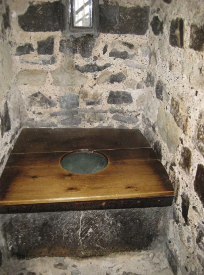 Туалеты представляли собой выгребную яму со сделанной над нею деревянной скамейкой с отверстием.