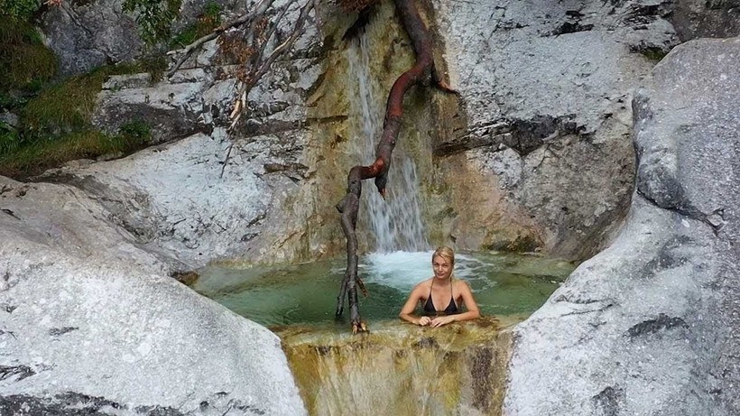 Кажется, будто на Земле осталось не так много мест, куда бы не ступала нога человека. Но наша планета пока не изучена до конца, а travel-блогеры лишь подтверждают это, публикуя невероятные фото и видео из самых отдаленных уголков. В видеоролике, представленном ниже, путешественница купается в бассейне, который находится высоко в горах.