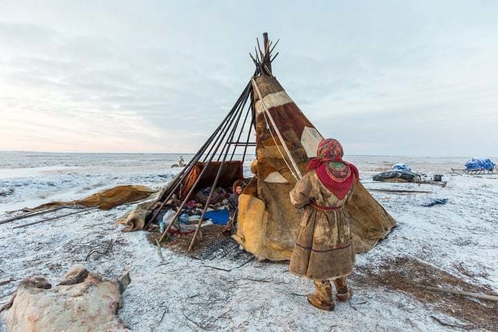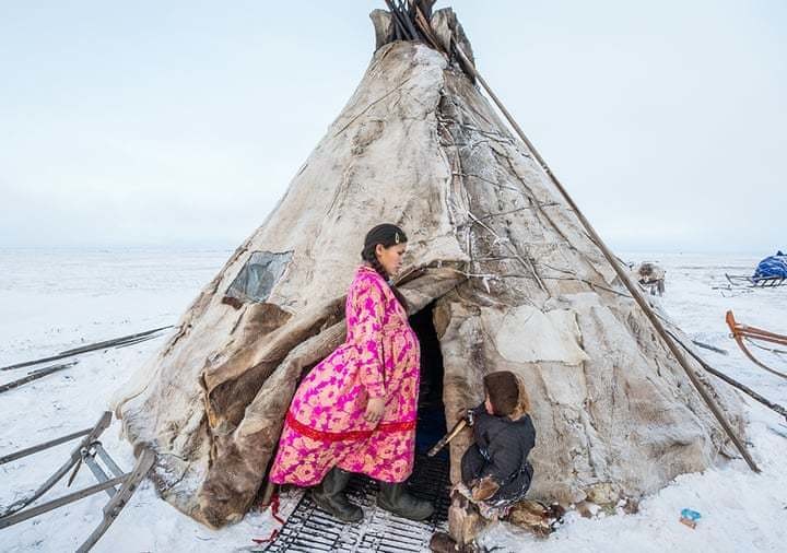 Ненцы живут в традиционных жилищах, которые способны выдержать морозы, снежные бури и сильные ветры. Чум для них ― центр всей их жизни, и он ассоциируется с целым миром. Отверстие внутри чума сделано так, чтобы днем из него было видно солнце, а ночью ― луну. Шкуры вместо стен символизируют воздух, который окутывает нашу планету. Богатство семьи можно определить как раз по чуму: чем он больше, тем более зажиточная семья.