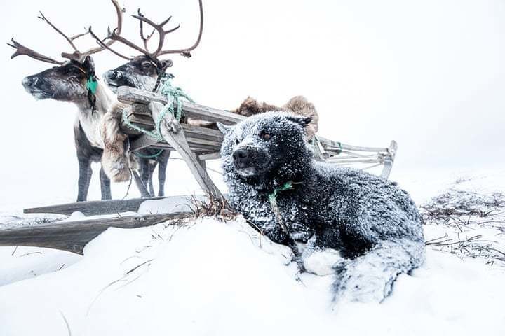 Ритм жизни ненцев определяется их оленями. Именно за этими животными они следуют на летние пастбища, а когда снова приходит тепло ― на зимние. Однако руководит всем процессом миграции человек. На фото беременная Лена с одной из своих собак собирает оленей в один круг. Это очень тяжелая работа, которая длится несколько часов.