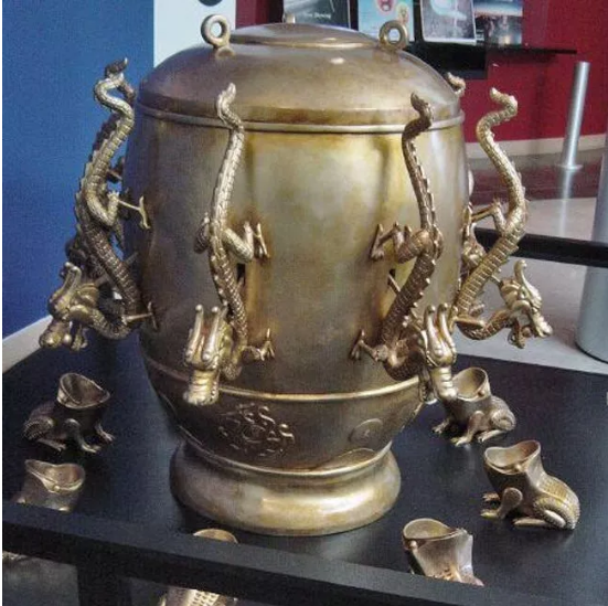 Этот сейсмоскоп вошел в историю как первый прибор, с помощью которого можно было зафиксировать и предсказать землетрясение. Этот великолепно украшенный шедевр с жабами и драконами был создан в 132 году нашей эры. Действовал он следующим образом: когда приближалось землетрясение, один из драконов, каждый из которых ответственен за свою сторону света, выбрасывал шарик в рот жабы, тем самым показывая, откуда идет катаклизм.