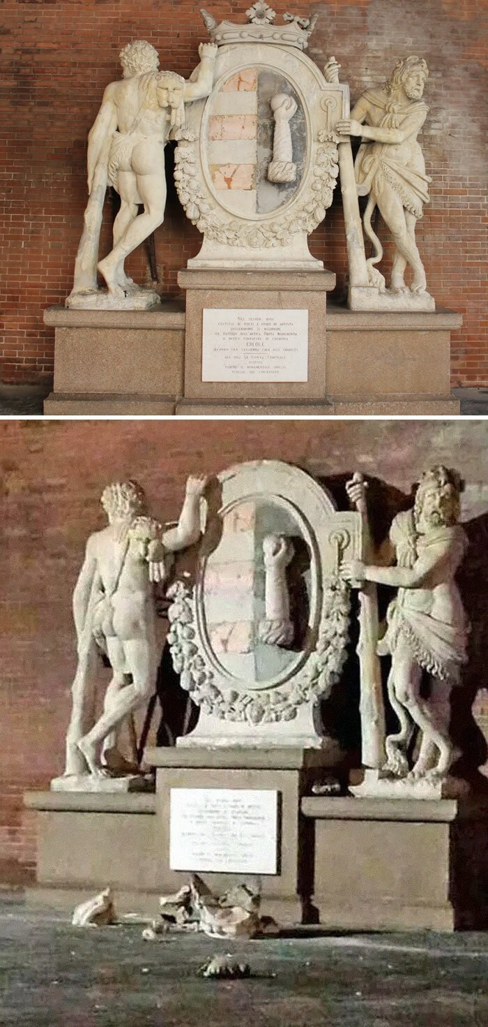 Если вблизи памятников культуры не установлены видеокамеры, то, конечно, виновных могут и не найти. Так случилось и с потерей короны у бесценного памятника в Италии — Два Геракла.