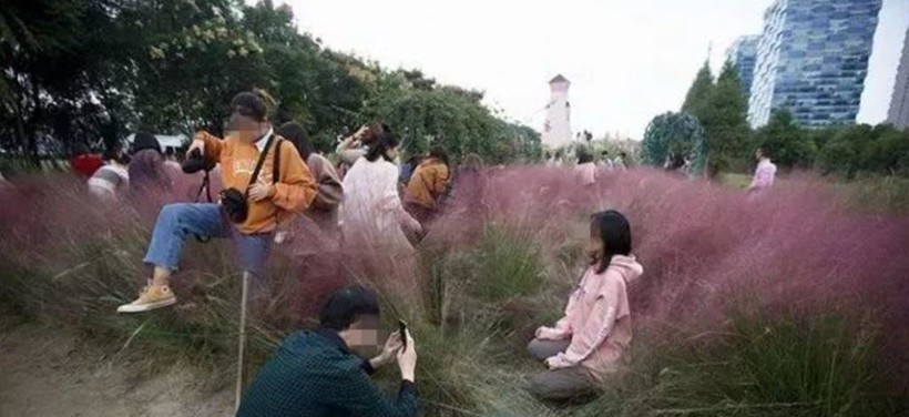 Многочисленные фотосессии в редкой розовой траве в Китае привели к ее гибели.
