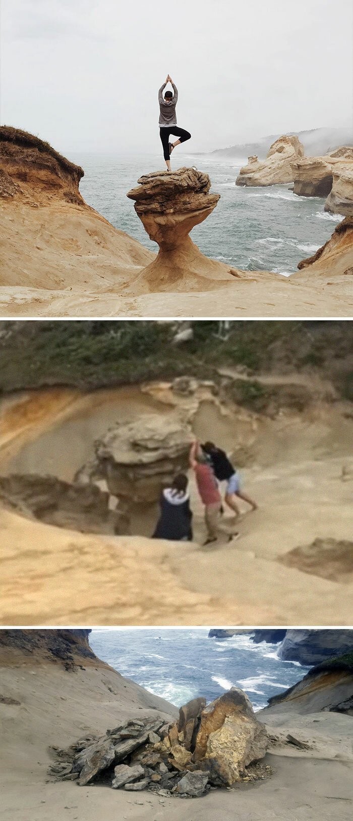 Древняя скала «Голова утки» (Орегон) была разрушена любителями достопримечательностей, несмотря на ограждения, запрещающие приближаться к ней.