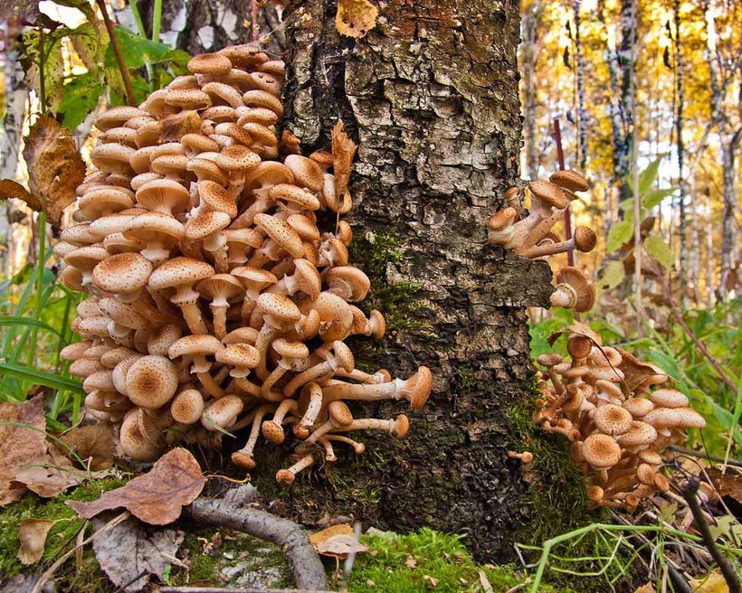 Дружная семейка опят — радость для любого грибника, отправляющегося в лес осенью. Но мало кто задумывается о том, что дерево, у подножия которого растут эти грибы, уже обречено на гибель. Более того, высока вероятность того, что все деревья, растущие поблизости, также долго не проживут. Дело в том, что осенний опенок является злейшим лесным врагом, по вине которого гибнут сотни гектаров экосистем в самых разных уголках мира.