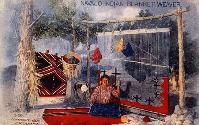 Индеец навахо изготавливает покрывало, 1904