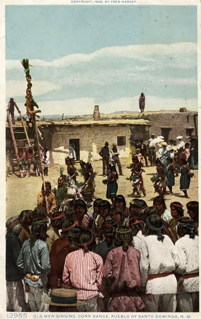 Старики поют во время танца кукурузы, Пуэбло Санта-Доминго, Нью-Мексико, 1908
