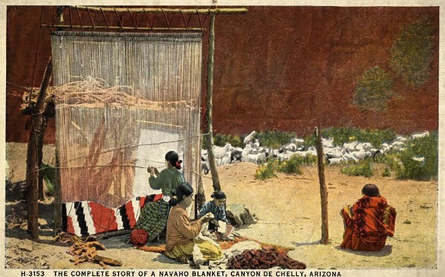 Создание одеяла навахо, Каньон-де-Шей, Аризона, 1915