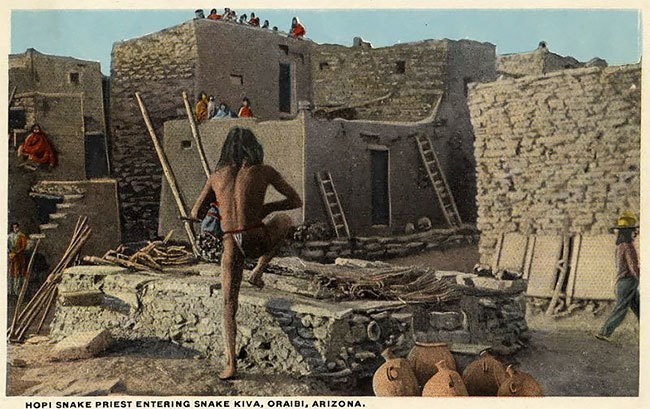 Змеиный жрец хопи, входящий в змеиную киву, Ораиби, 1920
