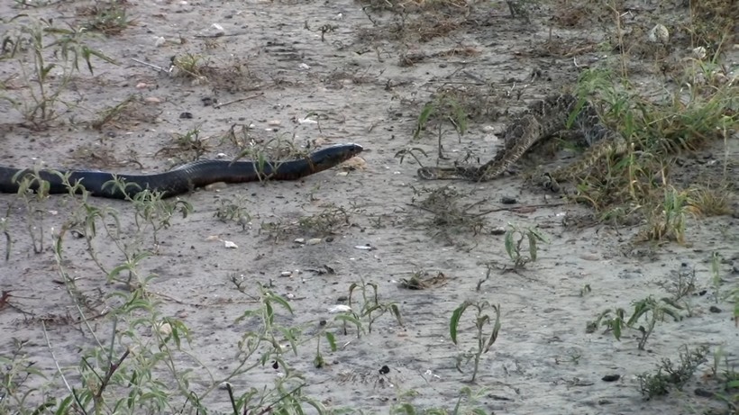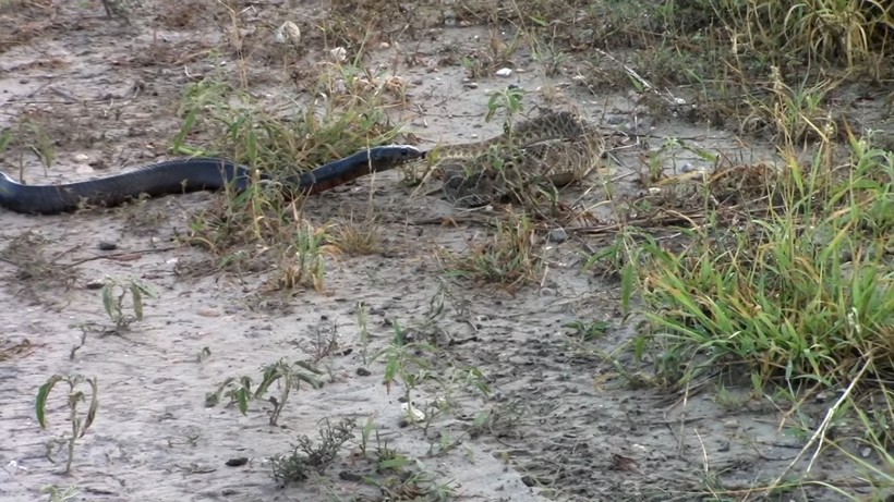 В видео ниже змеи очень долго присматривались друг к другу и не начинали бой. Первые шесть минут пресмыкающиеся изучают друг друга и пытаются понять, что будет делать противник. Исследователь поведения змей и биолог удивился этой битве, ведь змеи разных видов обычно не соперничают между собой, поскольку им нет смысла захватывать чужое логово и территорию, так как спаривание с самками другого вида невозможно.