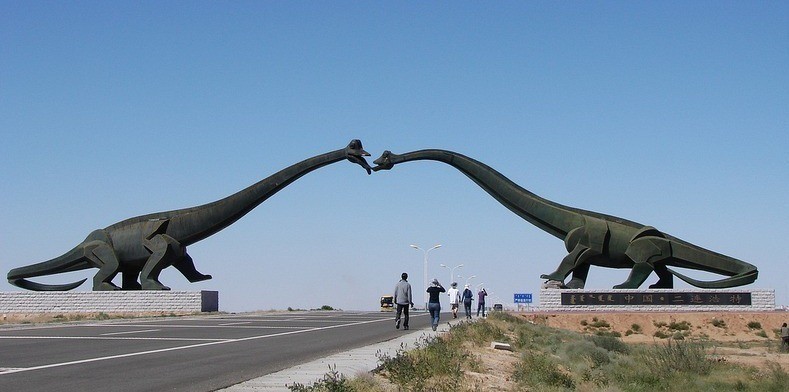 Недалеко от границы Китая и Монголии, рядом с городом Эрэн-Хото, вдоль дороги стоят два огромных бронтозавра. Скульптор запечатлел динозавров так, словно они вот-вот сольются в поцелуе. Каждый из этих гигантов достигает 19 метров в высоту и более тридцати метров в ширину. Рядом с ними можно найти десятки статуй других монстров юрского периода ― ими заставлена вся степь. Когда-то эти территории были настоящим городом динозавров.