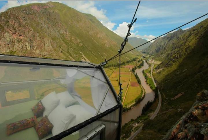 Ночь, проведенная под звездным небом, может звучать банально, но только если речь не о гостинице Natura Vive Skylodge. Нет, это не пафосный небоскреб с огромным балконом, не бунгало на пляже и даже не новомодные глэмпинг-палатки. Natura Vive Skylodge находится на отвесной скале на высоте четырехсот метров от земли. Между гостями будут только горы, пропасть, восхитительная долина и звездное небо.