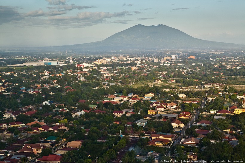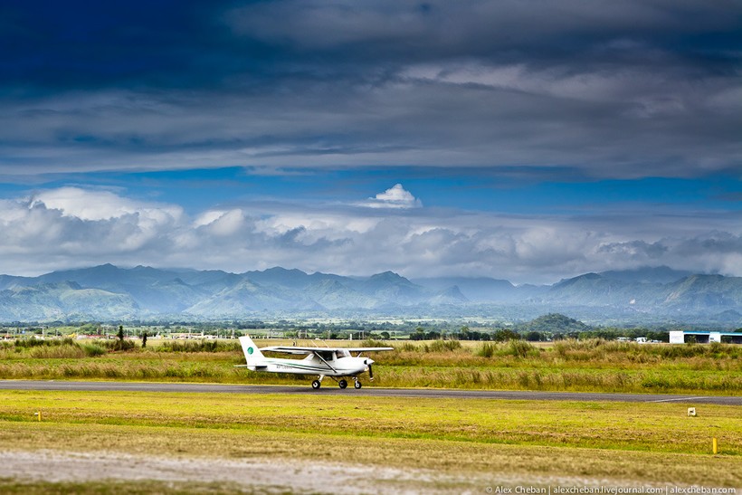 Полет длится 1 час на двухместном или четырехместном самолетах Cessna-152 или Cessna-172. Стоимость 100 долларов. Лучшее время года для полета — ноябрь-март (сухой сезон), с наибольшей вероятностью облачность будет минимальной рано утром и после обеда. Я забронировал полет на 9.00, светило солнышко и единичные облака проплывали надо мной… однако горный массив и Пинатубо был плотно затянут облаками. Погода быстро менялась, и вскоре все небо затянуло… Небо стало сравнительно ясным только после полудня, вылетел я в 16.00 (!) вместо запланированных 9.00.