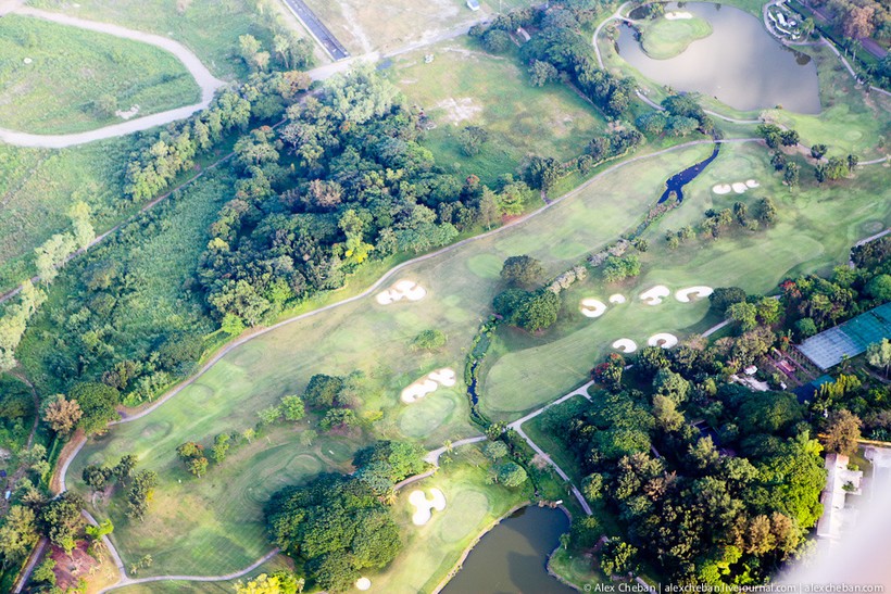 Что хорошо в маленьком самолете — это возможность открыть окно, но оно открывается в вертикальной плоскости, поэтому для съемки общего плана все равно приходится делать это через стекло. А еще можно попросить пилота «чуть левее, правее, выше, ниже…» :)