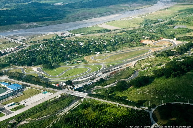 Сделав над кратером два круга на разной высоте, мы полетели назад, увидев по пути какую-то концертную площадку: