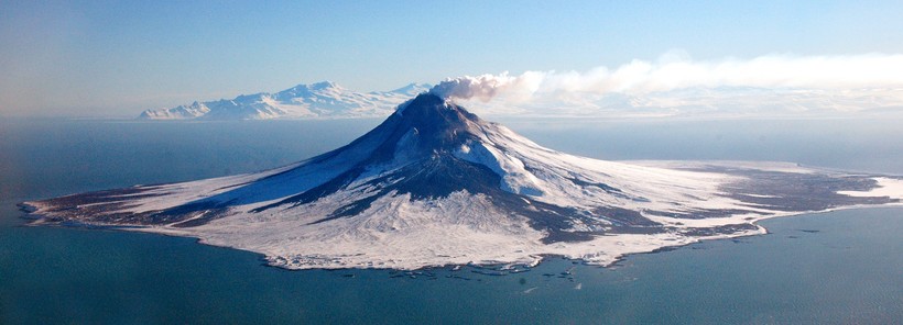 Этот потрясающий своей красотой вулкан расположен у берегов полуострова Аляска и считается довольно молодым. По подсчетам вулканологов, ему не более 2000 лет.
